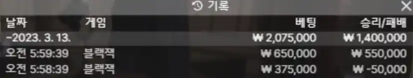 아벤 블랙잭 승부