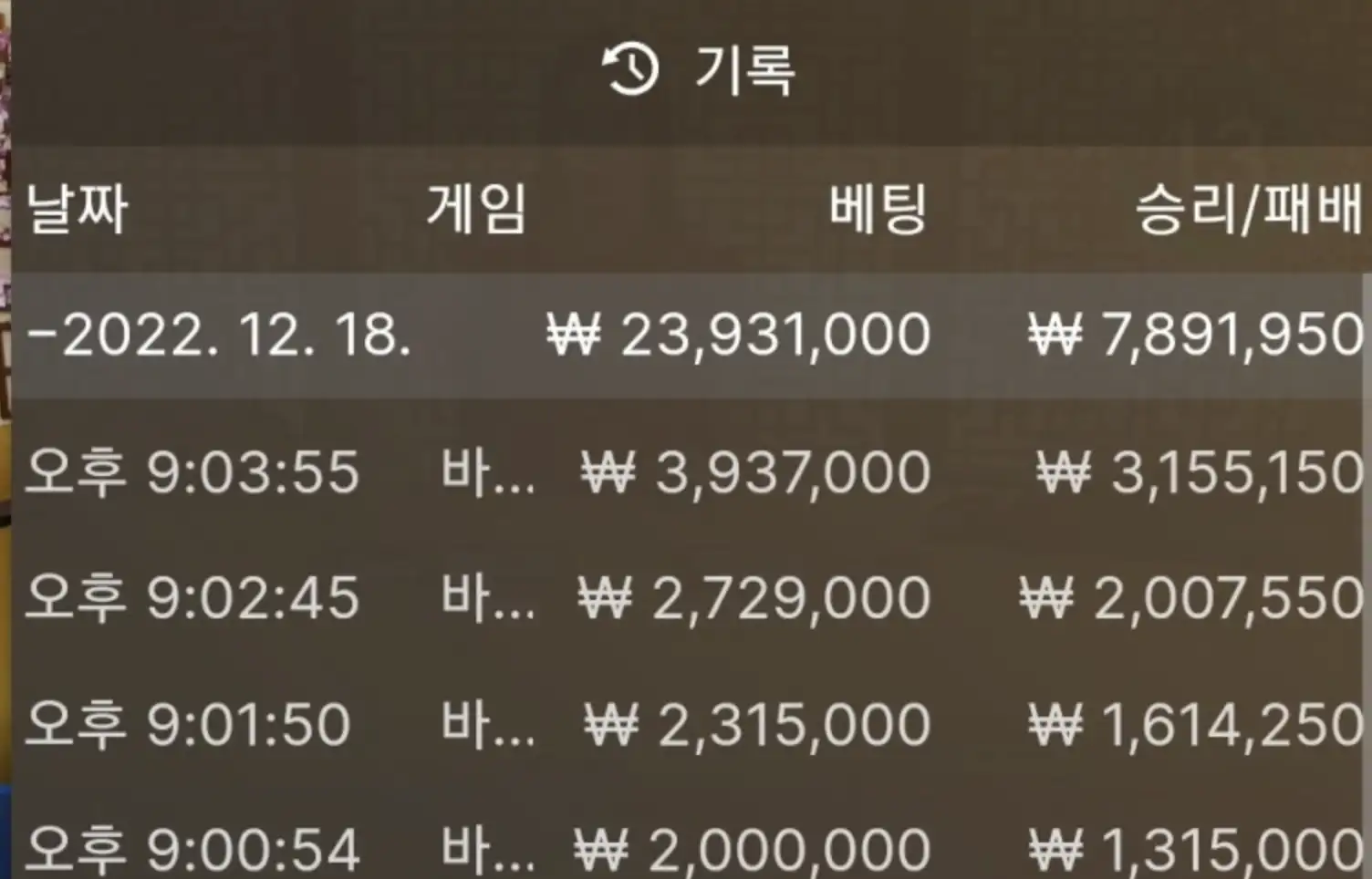에볼루션 바카라 주말 마지막 일요일 대패..
