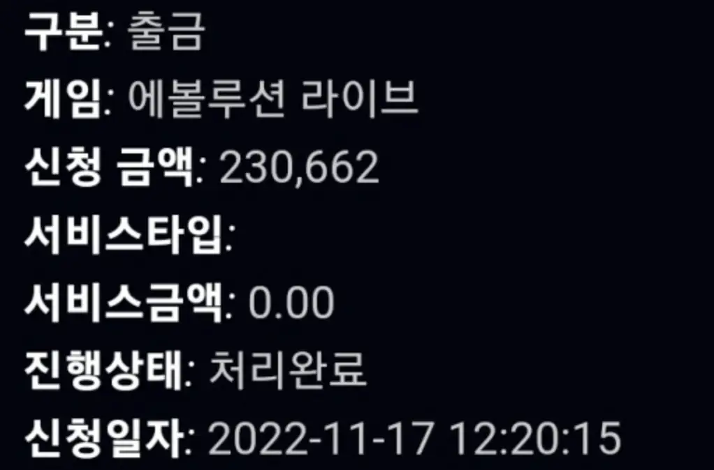에볼루션 출금 후기..