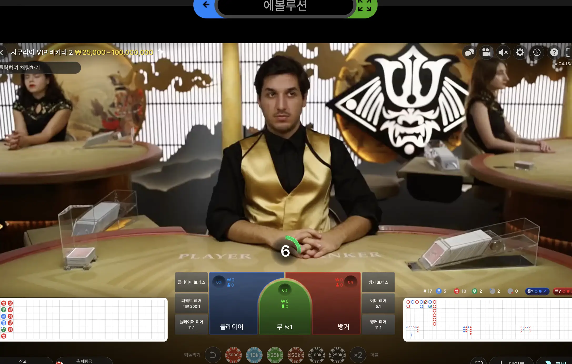핑카지노 바카라 줄잡았네여..