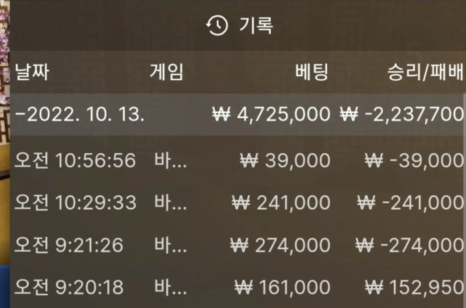 열람중 핑카지노 에볼루션 땃던거 다뺏김.. 슈가 2022.10.13 895