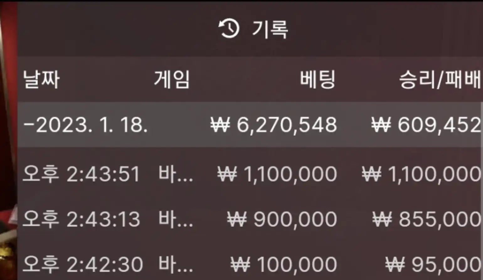 음주배팅 돈100 승리.. 홈카..