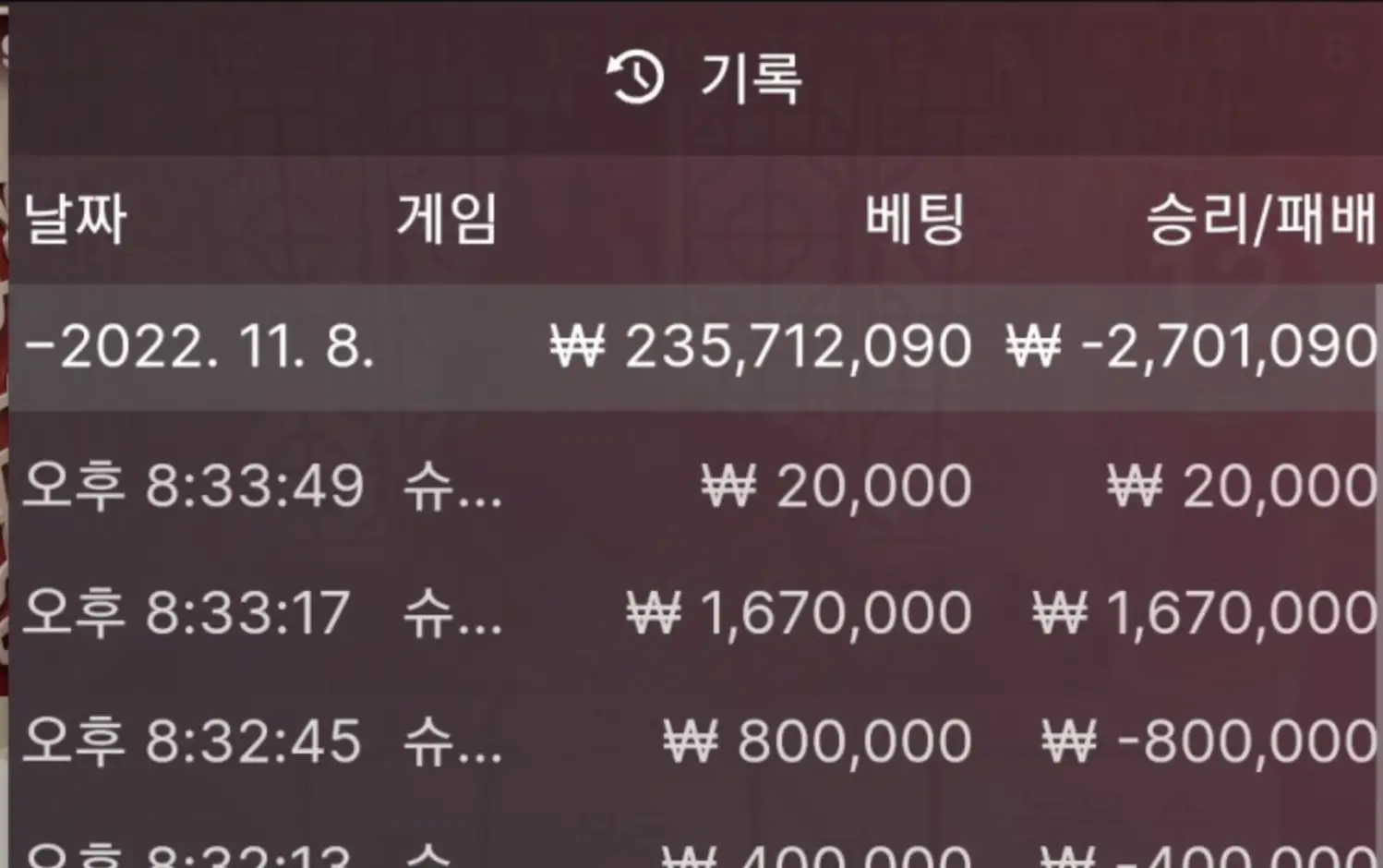 에볼루션 손실후 또손실...