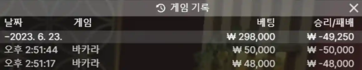 양귀비 바카라 리절랙션