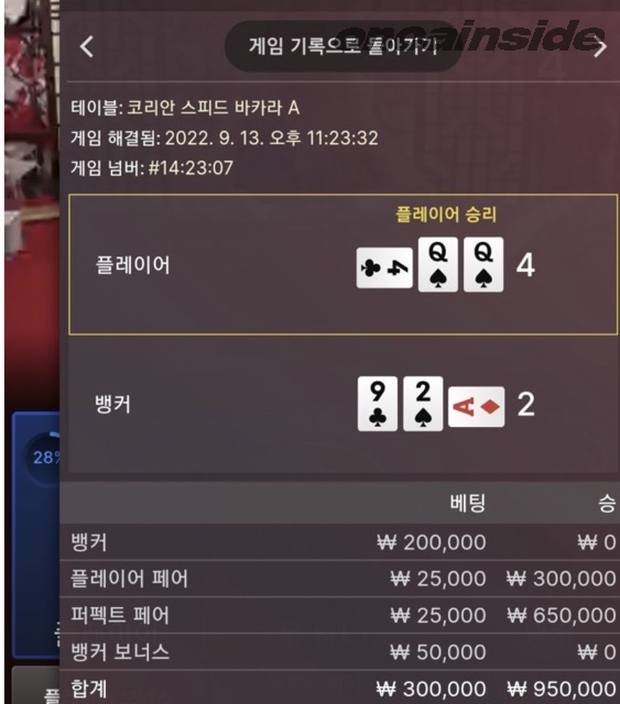 플레이어 페어에 퍼팩트까지 기가막힙니다 근데 여태 이거 잡을라다가 날린돈이 당연히 더큼..ㅋㅋㅋ 먹어도 찝찝..