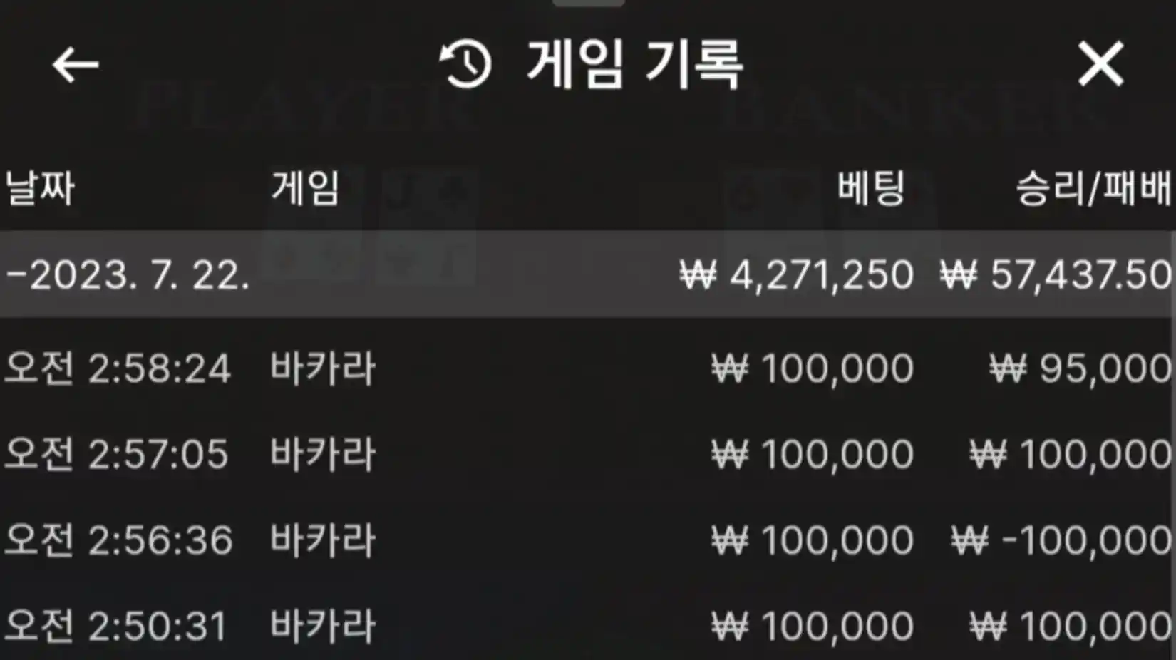 7/22 핑카 바카라